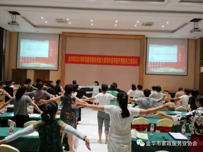 8月10日上午8点半始,金华市家政服务业协会在金华市金磐路数字经济园内举办了为时一天的育婴员理论知识与技能的赛前培训。